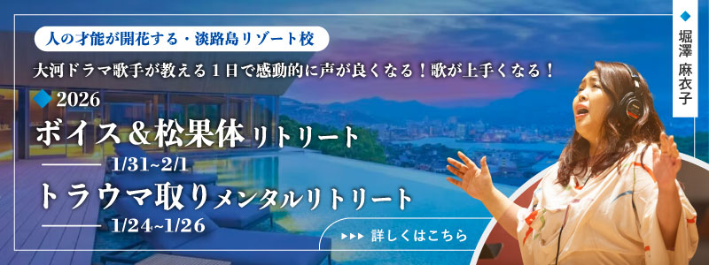 のびやかにカラダの力を抜いて歌うなかで、心の塊が解けて、カラダが震え、涙が出る人が今まで何人もいたそうです。それは不必要に体内に溜め込まれていたトラウマ・エネルギーが解放されているということ。また、のどが詰まる、声が出にくいなど、カラダにに現れる症状や問題は、「これに取り組むといいよ」と教えてくれているサインだと思っています。
