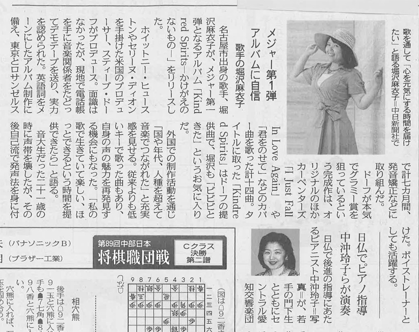 堀澤麻衣子の地元名古屋の中日新聞に掲載されました。