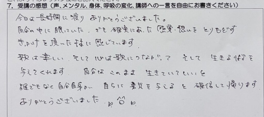 今日学んだことを忘れず、復習しながら楽しく歌えるようになりたいです。
